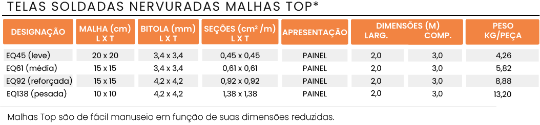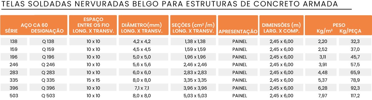 garantindo resistência, durabilidade e segurança. Dependendo da especificação é fornecida em telas